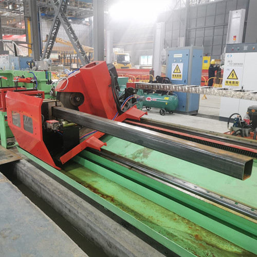Cold saw is a new online cutting technology in H.F. welded tube industry. Compare with the friction heat saw, its most major characteristic is the cold milling principle. The end of the tube is smooth and without burr after cutting off. For high quality requirements, these is no need off-line second treatment. In addition, due to the use of servo tracking technology, cutting length accuracy is higher than the traditional computer flying saw. Dust and noise pollution are obviously reduced in the production process.