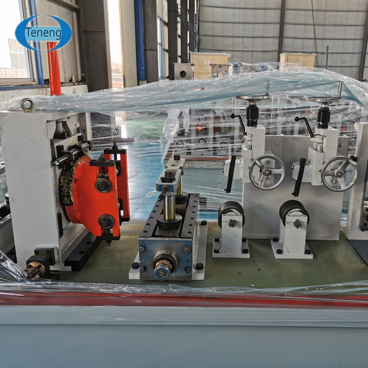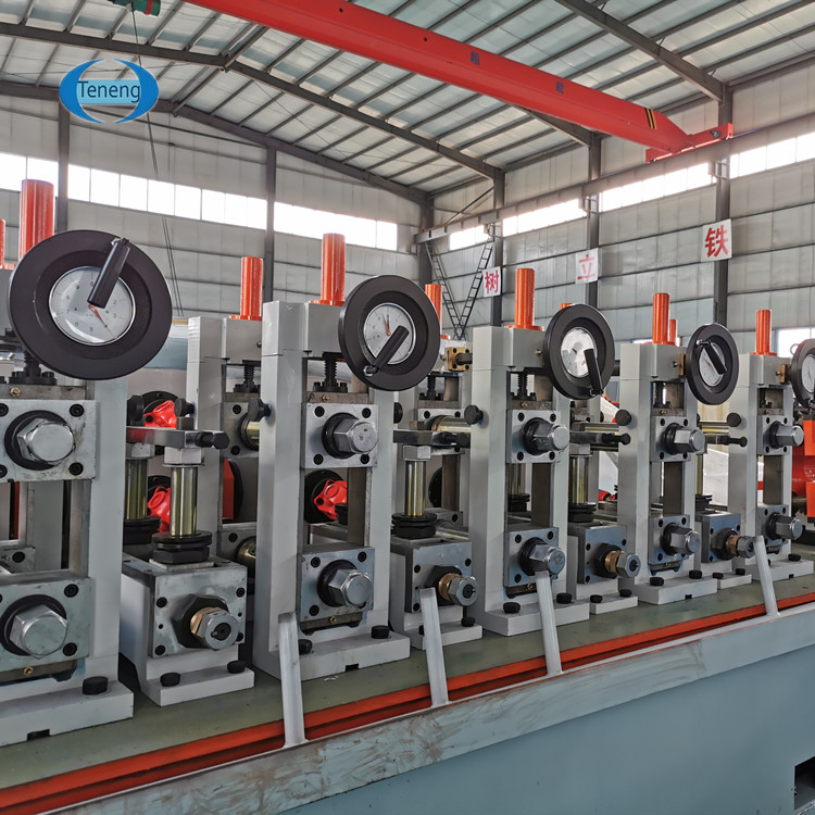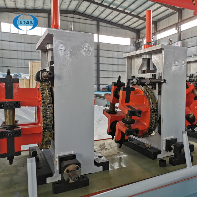 The mill is intended for manufacturing of round pipe ofΦ12-Φ50mmwith thickness of 0.5-2.0mm from cold-rolled and hot-rolled coil strip by means of unclosed tubular blank with its subsequent welding into tube, edge heating by means of solid state high-frequency welder, longitudinal seam welding in rolls of tube welding machine, cooling, further sizing or shaping and on-stream cutting of endless tube in measured lengths.
