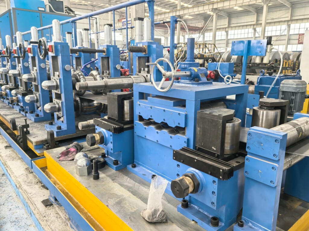 Uncoiler → shear & butt welder→ buffering → forming section → welding section→ cooling → sizing section(straightening) → online eddy current testing → cutting → blanking collection
