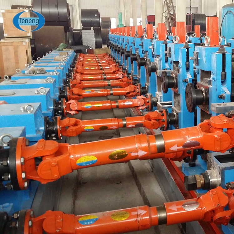 HGF300 high-frequency welded pipe production line is the special equipment providing longitudinally welded pipe and cold formed steel for industries such as metallurgy, construction, transportation, machinery, vehicles and so on. Used traditional square technology to produce square and rectangle pipe.Taking cold or hot-rolled steel as raw materials, through cold-formed and high-frequency welding method to produce the suitable round tube. Material of the coil: low carbon steel (σb≤500Mpa,σs≤235Mpa.)Strip Steel: Q235 (max.)