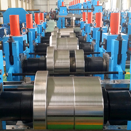 Стан предназначен для производства круглоготруба Φ25мм-Φ76мм толщиной 1,2мм–4.0мм из холоднокатаной и горячекатаной рулонной полосы с помощью незакрытой трубчатой заготовки с последующей ее сваркой в трубу, нагрев кромки с помощью твердотельного высокочастотного сварочного аппарата, сварка продольных швов в валках трубосварочной машины, охлаждение, дальнейшая калибровка или формовка и поточная резка бесконечной трубы на мерные длины.